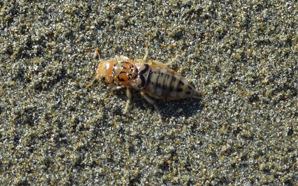 Charlene writes that the third, photographed at Bamfield on September 9, is a cool intertidal beach specialist staphylinid Pictured Rove Beetle Thinopinus pictus. They mostly feed on beach hoppers (Amphipoda).