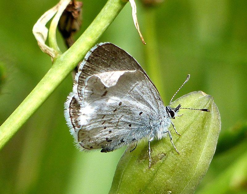 Jeremy continues: David Harris and I went to Island View Beach today, where David was treated to a sight of several pristine fresh Lorquin’s Admirals. Then we went to the fields inland from Island View Beach, hoping to find Ringlets (also known as Large Heaths). I am embarrassed to say I got hopelessly and utterly lost! It is a much larger area back there than I had ever realized. After wandering randomly for a long time, we eventually met someone and we had to ask the way. Anyway, it was worth it, because we saw several Ringlets and a Purplish Copper. We also found caterpillars of an Essex (European) Skipper and a Garden Tiger Moth (both of which David could have found in Sussex!). The caterpillar of the Garden Tiger is the original Woolly Bear, the latter feeding upon Yellow Honeysuckle. I haven’t seen one here for a few years, and it permitted only a not-very-good photograph, shown below: