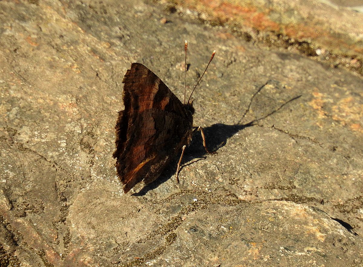 Here are photos of the Red Admiral and the two California Tortoiseshells perching near each other. Getting the two together is quite rare since they mostly seem to be madly dashing around the top of the hill.