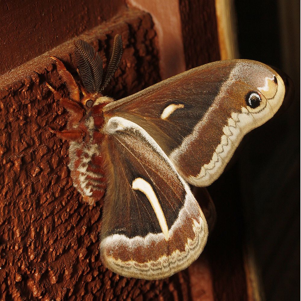 Libby Avis sends two photographs of a male Ceanothus Silk Moth Hyalophora euryalus taken in Port Alberni today (April 23). She writes: This was a real treat – we don’t see it very often! Five years since our last sighting, but I opened the front door this morning and there it was. Just had time to take a few photos. It was slowly opening and closing its wings and was gone five minutes later.